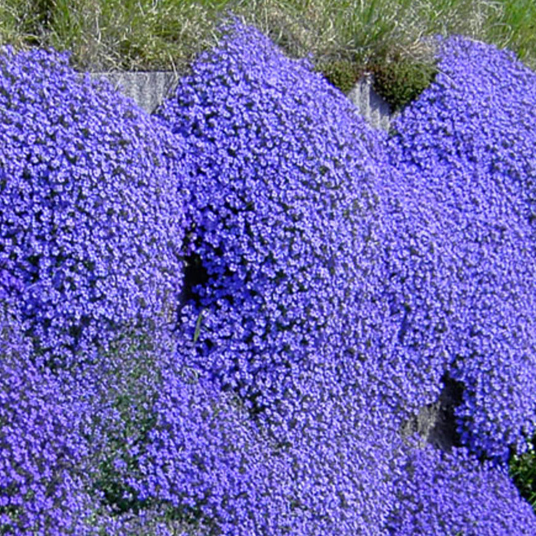 Blue Rock Cress (aubrieta hybrida superbissima cascade blue) is one of the most popular perennial ornamental groundcovers. It spreads rapidly and will cover a large area in a short amount of time. Reaching 4-6 inches high, it’s a perfect colorful option to place in edging, rock gardens, plant containers, hanging baskets and hanging against rock walls. The fragrant blooms produce a bright blue color that will really light up your garden landscape and also attract bees and butterflies. Rock cress is long-lasting and very easy to grow and care for. These plants are evergreen and keep their color in the winter.
