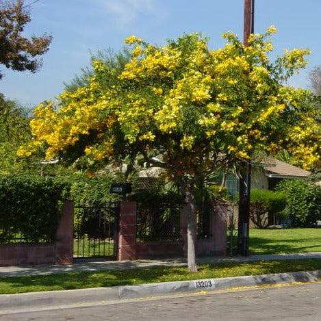 The golden cassia tree is a small ornamental tree that gives off beautiful, bright-yellow blooms several times a year. They also make great bonsai specimens!