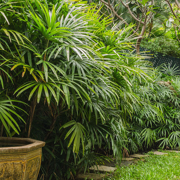 Lady palm trees are graceful clustering palms that give a garden a great tropical look. While most palm trees like full sun, lady palms look best in shady environments. Because of this, they make for great houseplants. While they’re clumping, they’re not invasive and won’t take over an area.